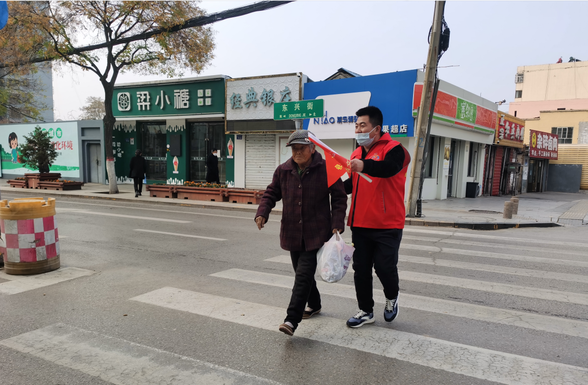 “大爺,現(xiàn)在是紅燈,您等會(huì)兒,我扶您過(guò)去。”“老奶奶,現(xiàn)在有很多車,等會(huì)我推著您走人行道。”“謝謝你,小伙子!”6日上午7點(diǎn)半,正值交通高峰期,神木市東興街古城北路十字路口車輛行人川流不息,在斑馬線兩側(cè)值守的志愿者們?cè)缫淹度肓酥驹阜?wù)活動(dòng)中。
