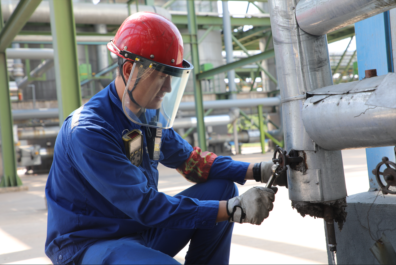 制氫車間二班王宇超在進行壓縮機蒸汽管線泄壓